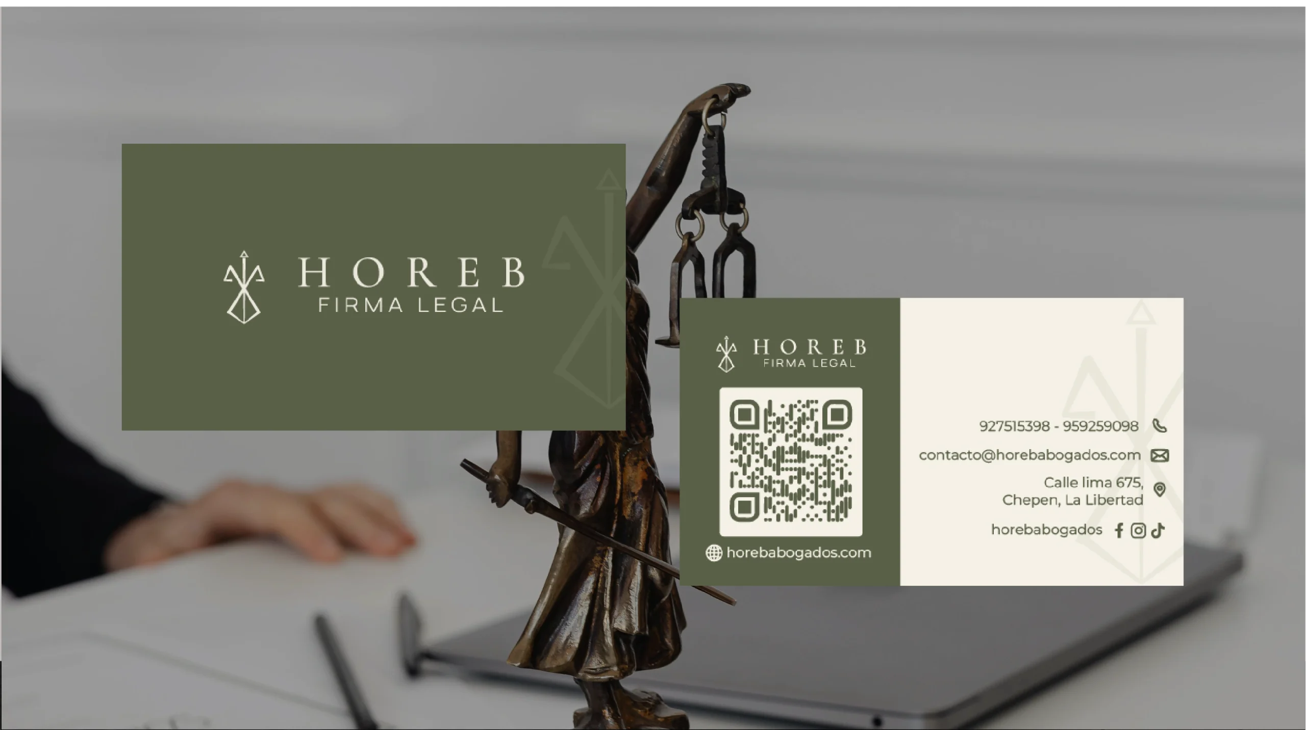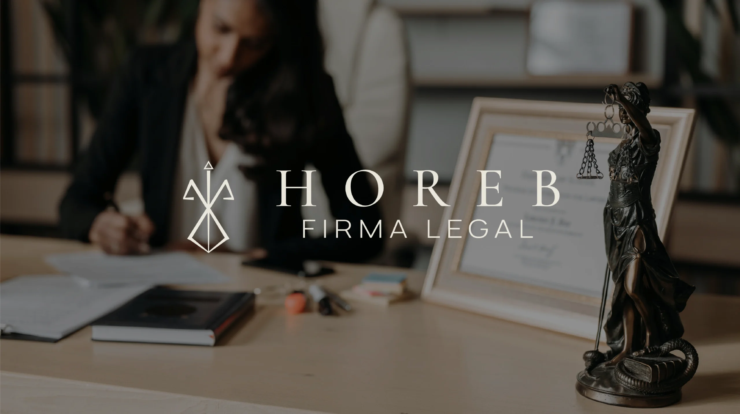 Horeb es una firma legal, que buscaba un diseño minimalista. La firma legal fue construida sobre el concepto de la dama de la justicia, equilibrio, firmeza.
