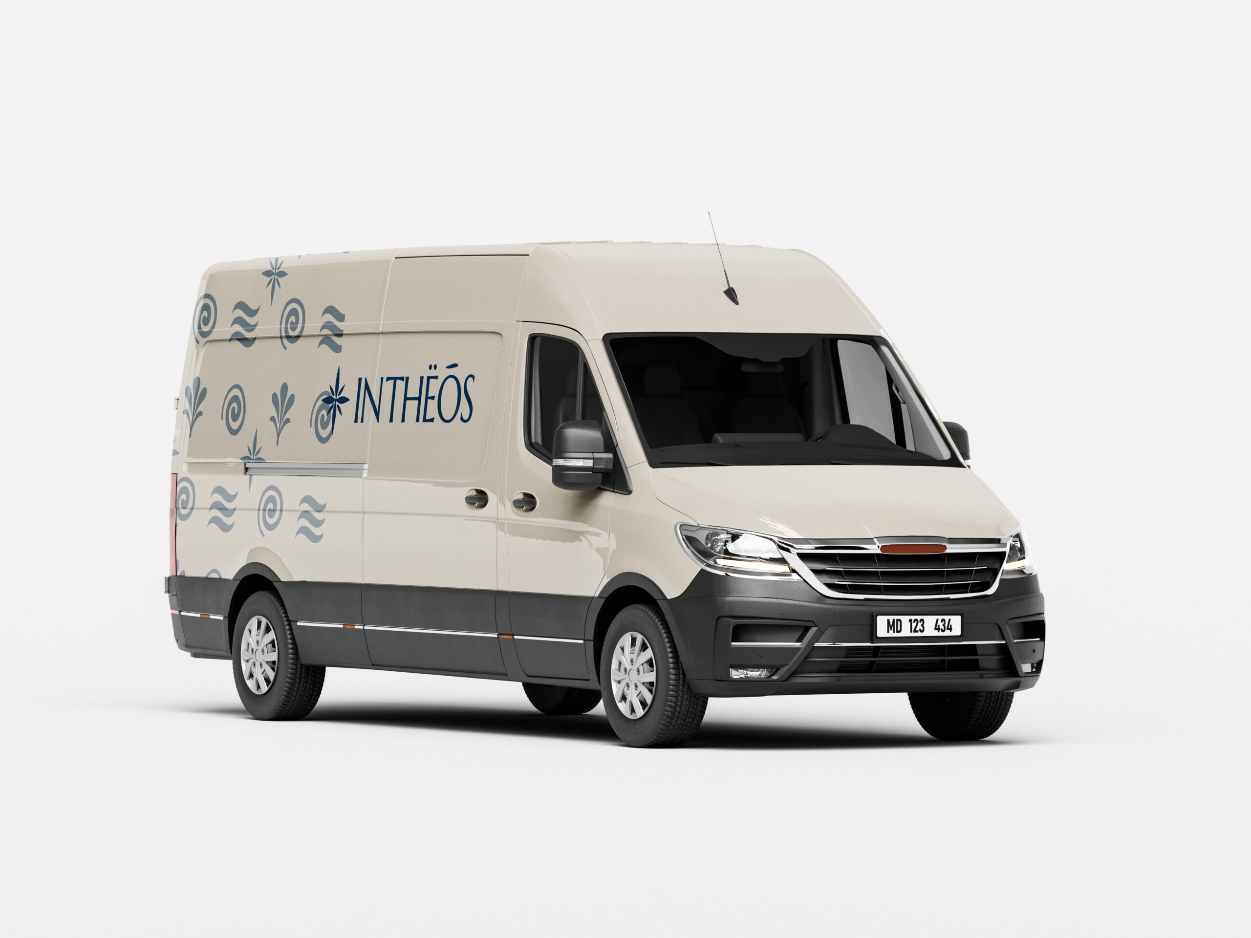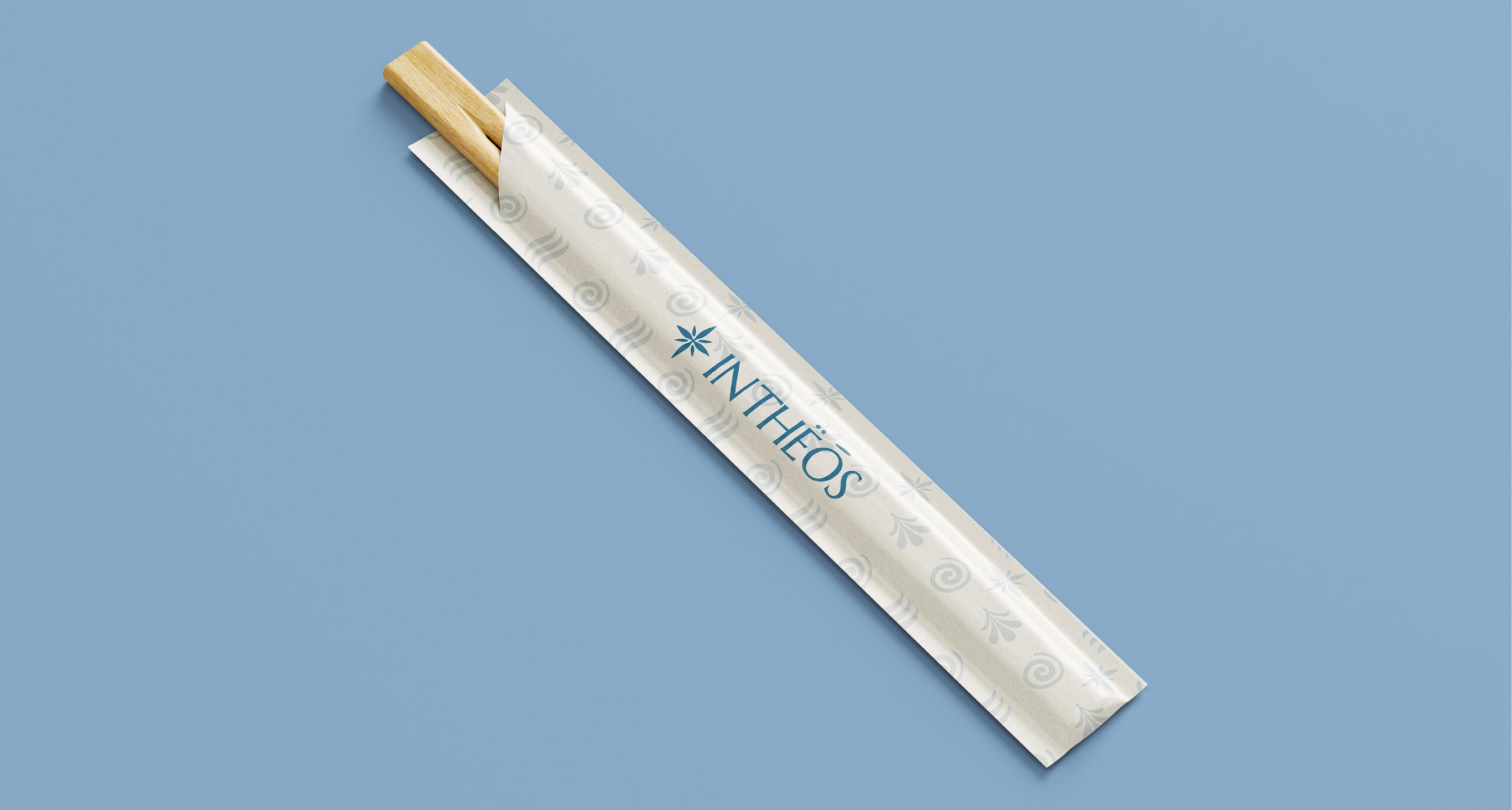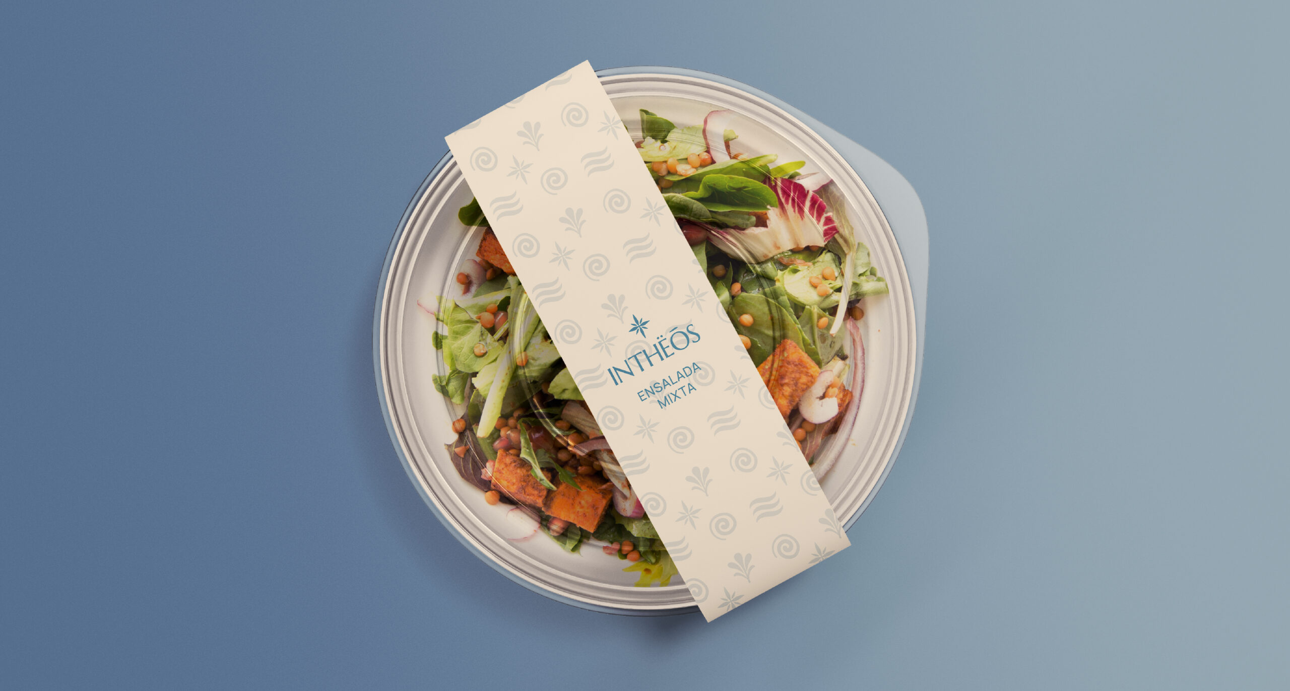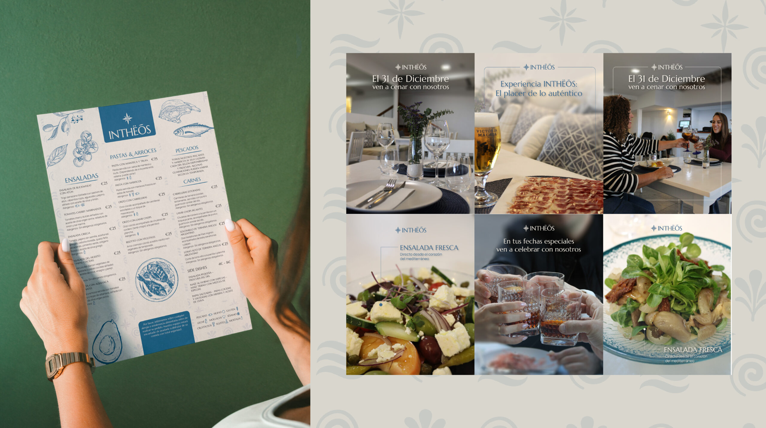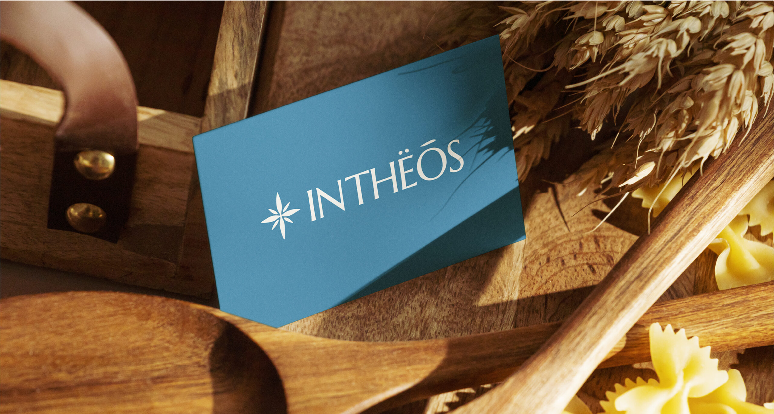 Intheos es un restaurante tenerifeño, comida mediterránea. Se buscó una identidad fresca, que refleje su conexión con la gastronomía griega.