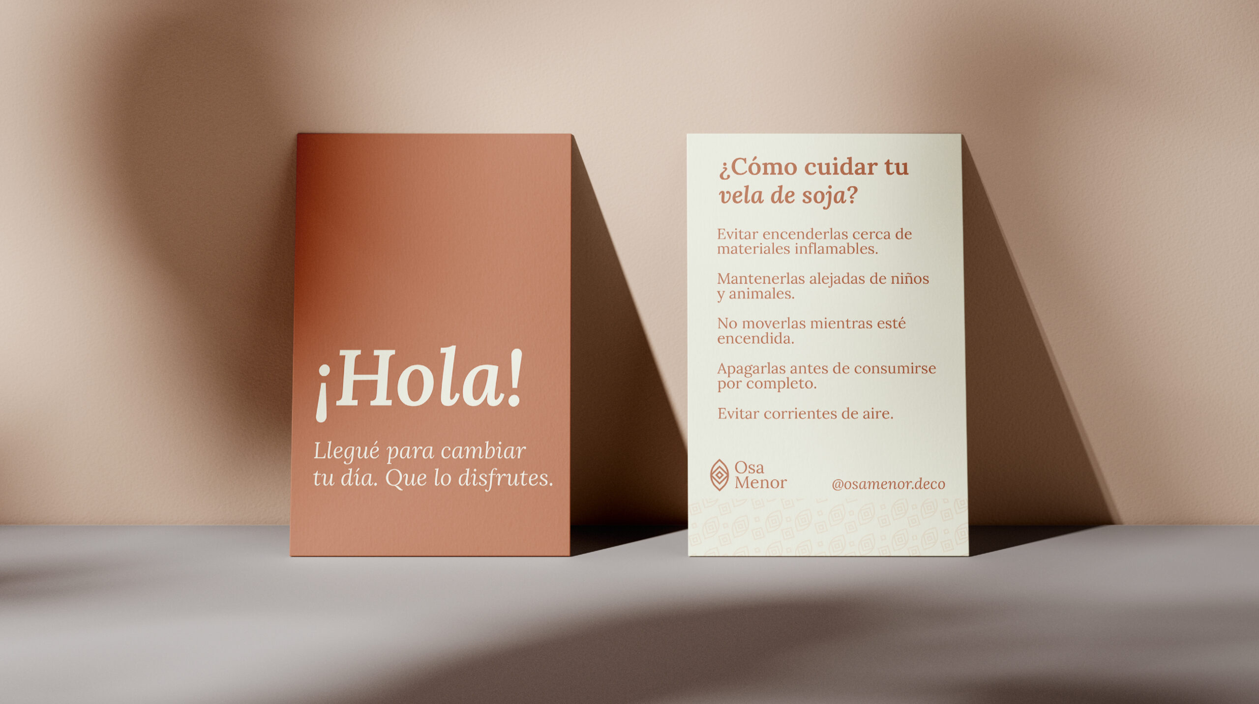 Osa menor es un negocio de deco, donde su producto estrella son las velas de soja. Se trabajó la identidad en base a este producto, desde el logo y sus versiones, tarjetas, etiquetas, cajas. Osa menor inspira emociones.